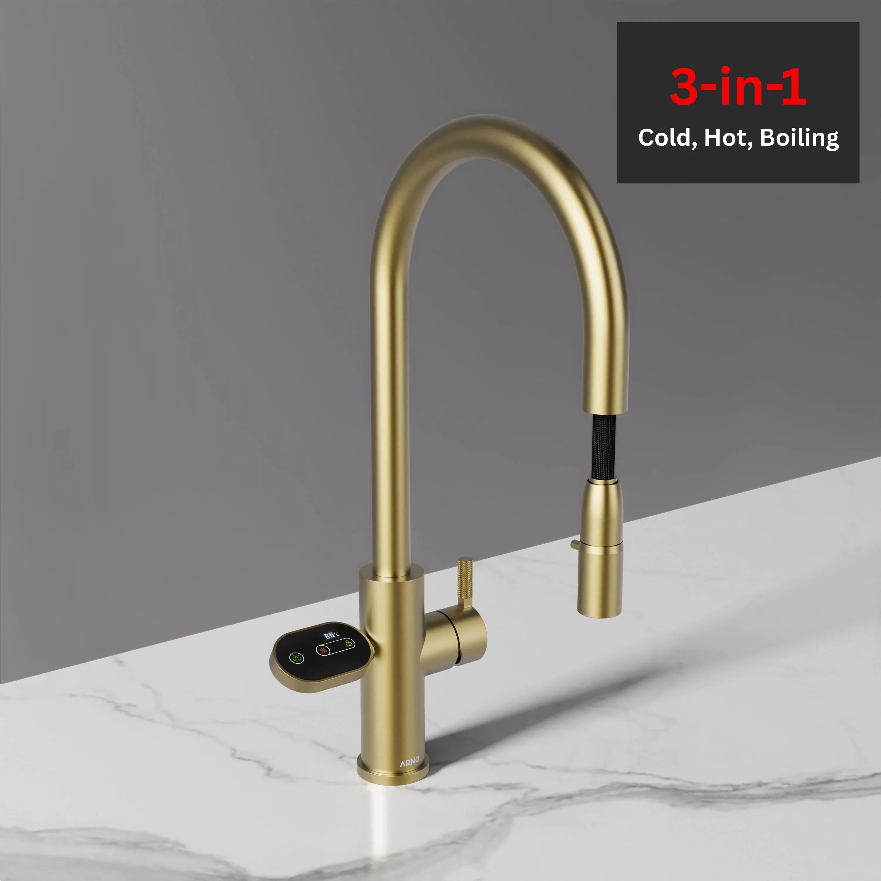 ARNO Flex 3-in-1 Champagnergoldener Sofort-Heißwasserhahn